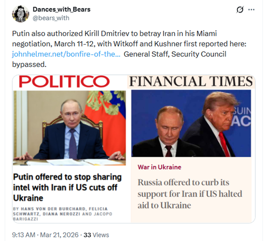 John Helmer Suggests Putin’s Betrayals Are Isolating Russia
